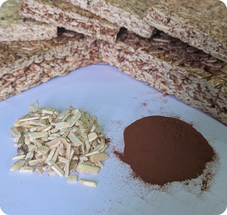 – Embodied Energy & Emissions: Initial calculations show a reduction in embodied energy and similar CO2 equivalent emissions to commercial particleboard wood, indicating a significant improvement over fossil-derived products.